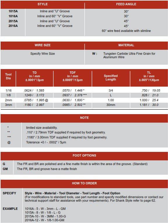 1015/1016/20115/2016 Inline Groove Notch 30° & 45°, U & V Groove Large Wire Notch Wedge Bonding Tools