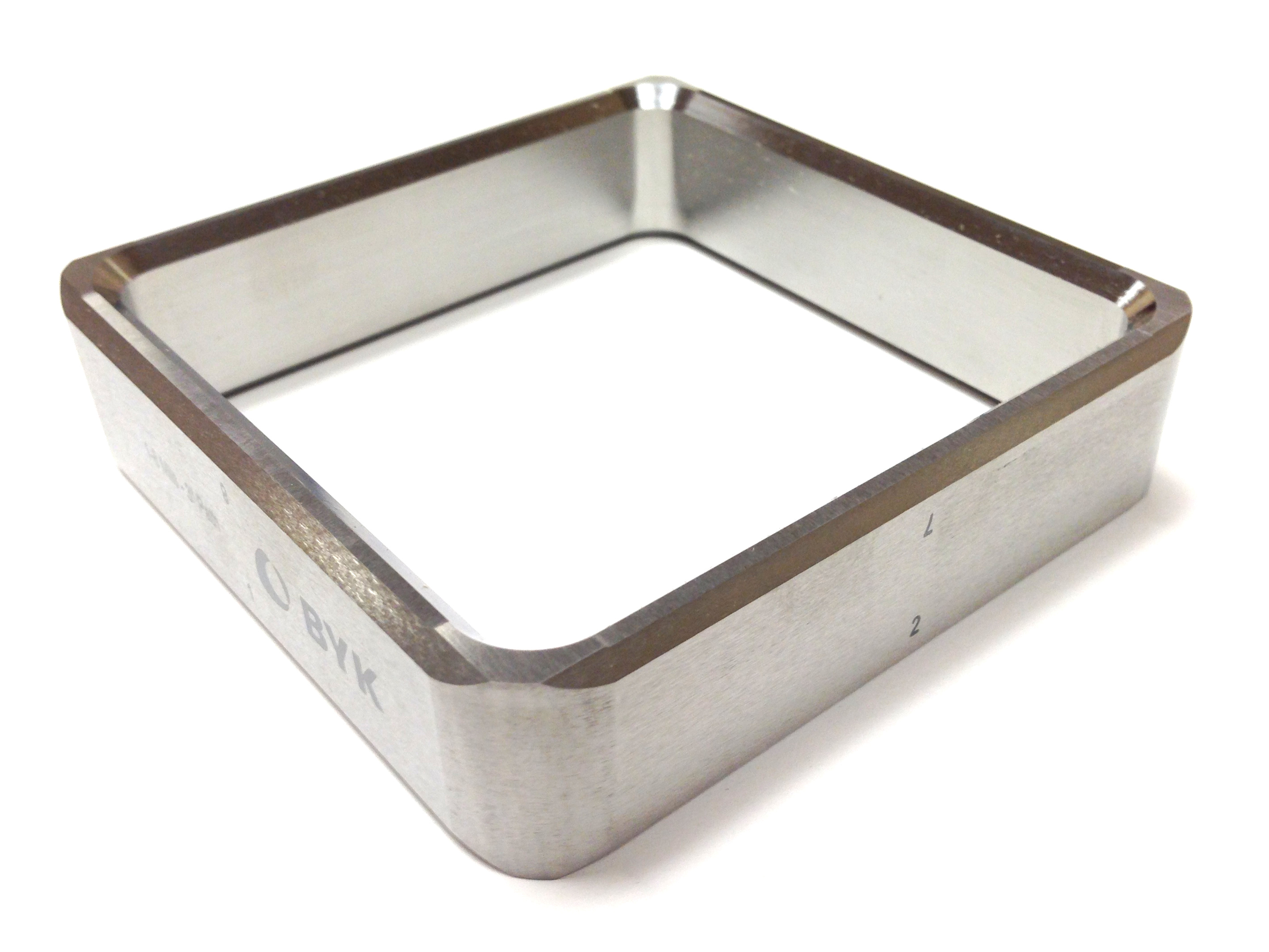 A small quantity of the material to be checked is placed on the inside of the selected channel and drawn down over a paper chart or other smooth flat surface providing a uniform thickness of film for observation and testing.
